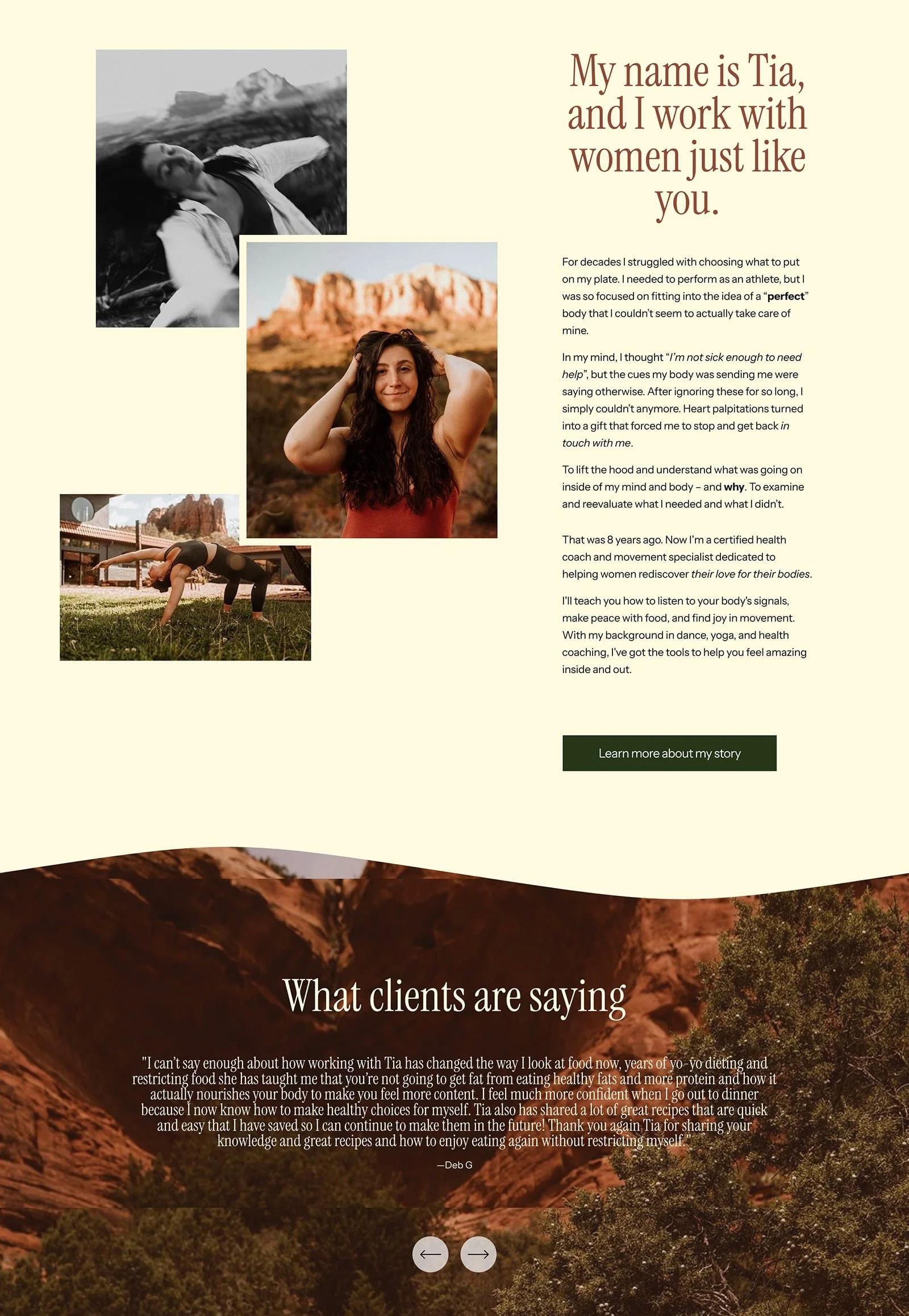 Earthy & Empowering Squarespace Website Design for Intuitive Health Coach & Yoga Teacher
